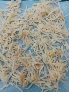 4. I preserved some dehydrated, grated potatoes from some old potatoes that were sprouting in the fridge. These will be stored and rehydrated in the winter to make hash browns during the hunger gap when potatoes are often missing from our home. I could have also washed and used the potato skins to make crisps (chips), but they weren’t good enough.