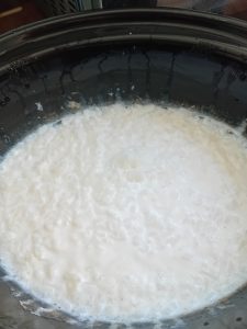 2. In my cupboard we have a bag of dried coconut milk that I bought last year to use when making sweet potato and lentil curry. It works out a lot cheaper than using cans of coconut milk. It is going out of date soon. I wanted to make some rice pudding in the slow cooker and so I made up 2 pints of coconut milk and used that. We therefore didn’t have to use any of our precious 2 pints of milk that we get a week from the milk man.