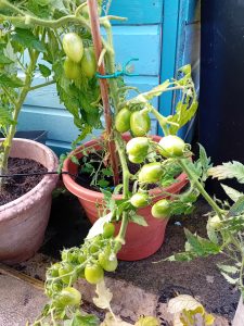 We are told not to grow food from supermarket produce. It is true that it doesn’t always turn out the same as the parent plants, but I have always had a successful crop. All of my peppers this year are grown from produce from The Company Shop. I have grown pointed ones for the first time. So little effort, but a high reward. This can be grown on a window sill, in a greenhouse or outside. All of my tomatoes are outside due to lack of space. I grow some of them up the back of the tin shed which keeps them warm and protected.