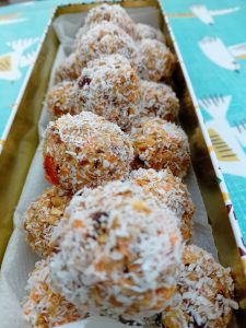 Heallthy carrot cake snacks were easy to make, and quite frugal. Thankfully, they are sweet enough to stop a craving,. Unlike anything with a chocolate flavour, I didn’t want to eat 3 or 4. It was therefore a win for me. The fact that they freeze is a bonus also as I can just defrost a couple a day. I made 17 balls with this mixture.