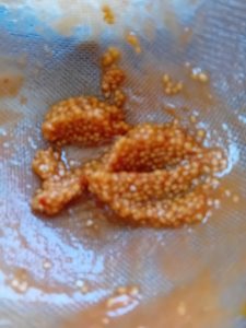 4. I then sieved the tomatoes again, pressing the pulp through with a back of a spoon. All the seeds were left. I wonder if I should save some to see if they will grow?