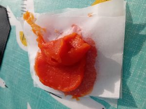 It probably wouldn’t have been worth doing this procedure if I had just needed the puree. It will probably only save me the cost of one tube. However a tube of organic puree would not be cheap, and I know this has no nasties. I was blown away by how beautiful and sweet the tomato juice was. I can’t wait to use that on Monday. The skins are not dry yet. When they are I will make tomato powder. I have done this previously and it really enhances the taste of a winter soup. I have added it to savoury scones and wraps before as well.