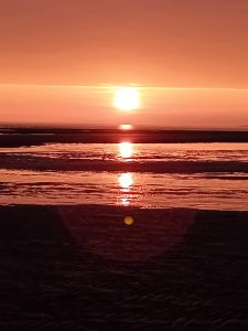 This year we went to North Wales. We were so lucky as we were allocated a van near the path to the beach. Both of us enjoyed the simple things like watching sunsets, walks on the beach, exploring the countryside, and mooching round the local town, and charity shops.
